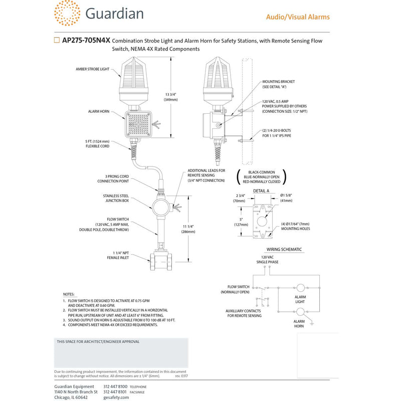 Guardian Ap275 705n4x Eyewash Station Strobe Light And Alarm Horn Eyewashdirect Com